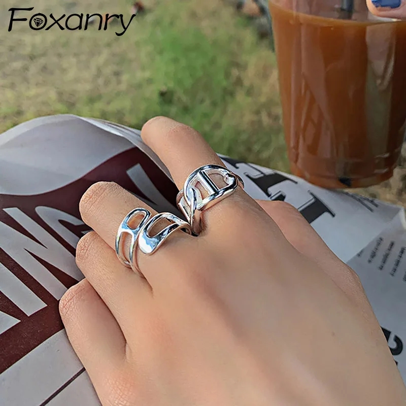 Joyería finaEn oferta Foxanry-anillos de fiesta de Plata de Ley 925, cadena Simple hueca, Cruz, geométrica, diseño creativo hecho a mano, regalos de joyería para novia WGwgrJ8xery